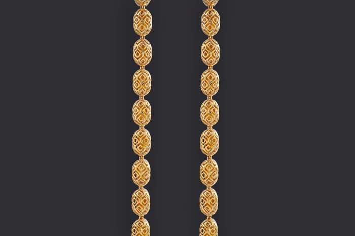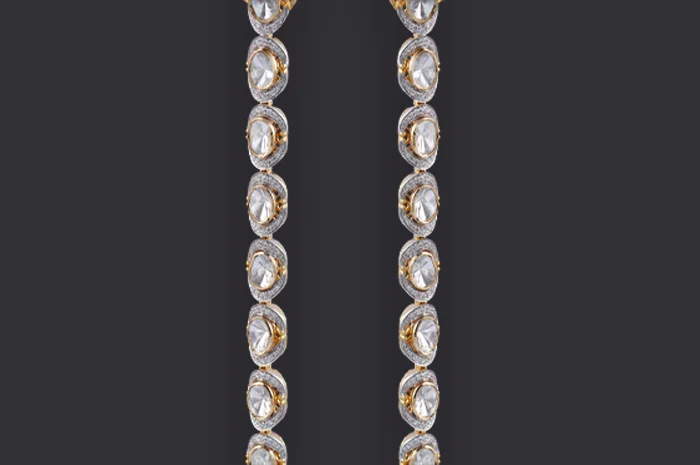 A continuous flow of luminous Polki diamonds, each uncut piece framed with impeccable artistry. The repetition of form magnifies the natural brilliance of every stone, creating an endless shimmer that feels both eternal and rare. A pure expression of craftsmanship, celebrating the poetry of light in its most refined form.