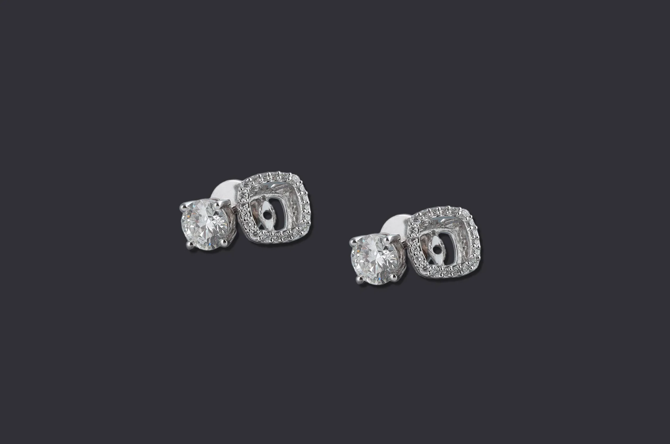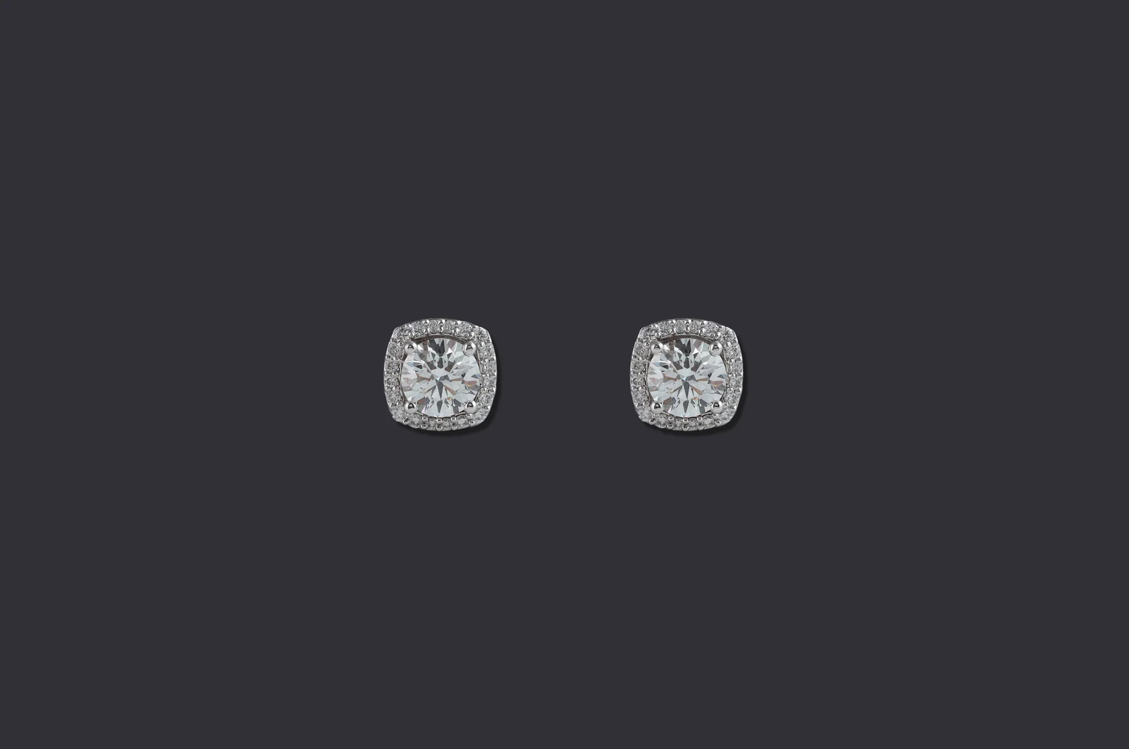 A versatile design that transforms with ease; a classic round brilliant diamond stud set in sleek prongs, accompanied by a detachable cushion shaped, diamond halo jacket. Wear them as understated solitaires by day or elevate them with the halo for evening elegance. Two looks, one timeless essential.