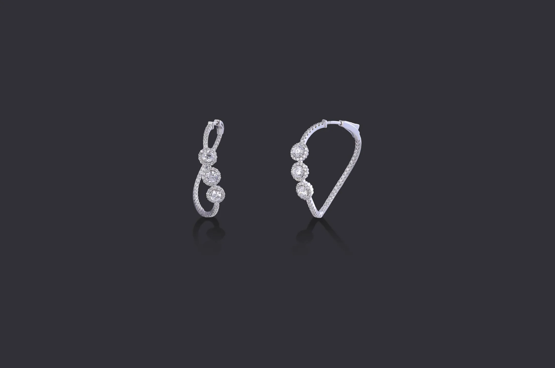 An elegant twist on the classic hoop, these earrings feature round brilliant diamonds set along an open curve, accented with pavé brilliance. A fluid silhouette that moves with you, perfect for evenings that call for understated glamour with a modern edge.