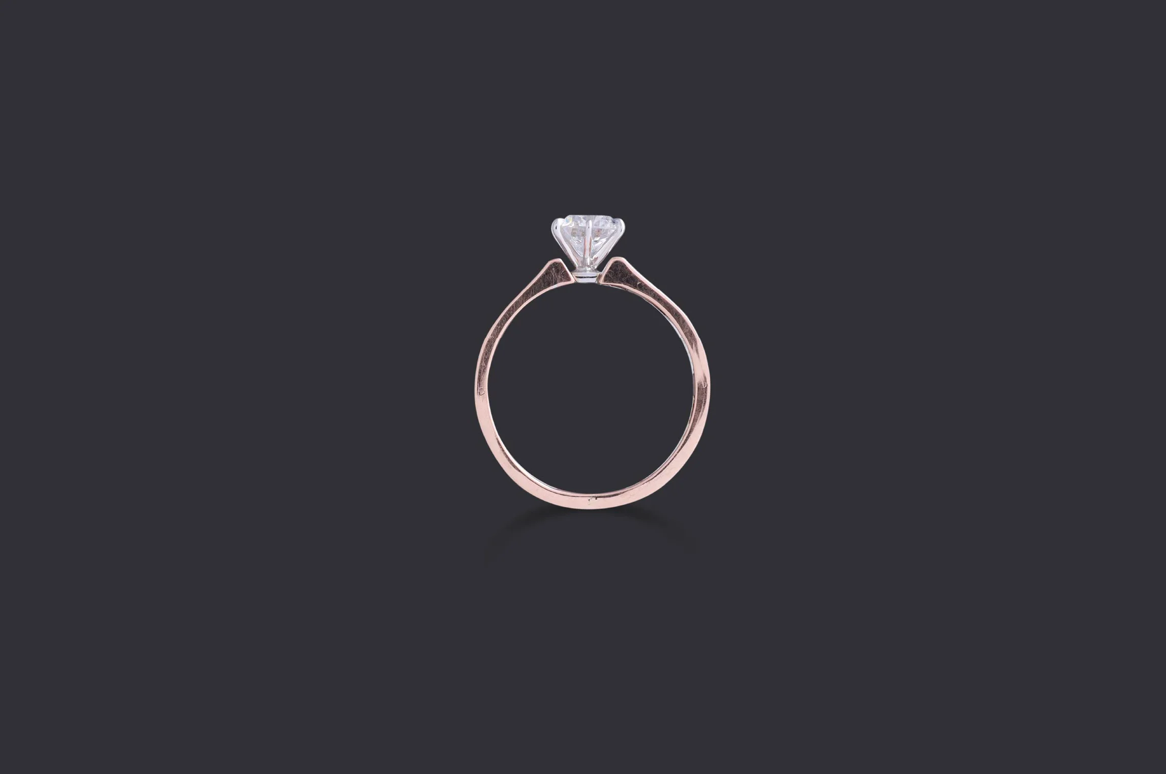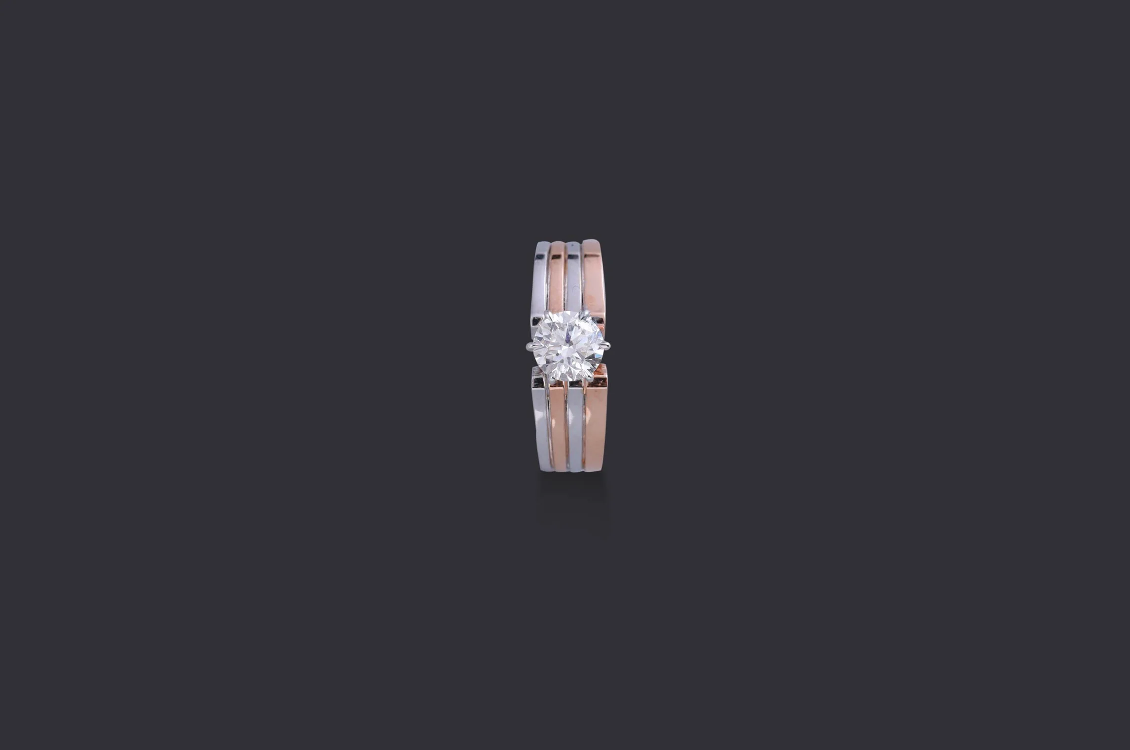 Crafted in rose and white gold, this innovative band frames a brilliant round-cut lab-grown diamond at its centre. With its tiered grooves and balanced design, it reflects unity and harmony — a modern heirloom for a lifetime bond.