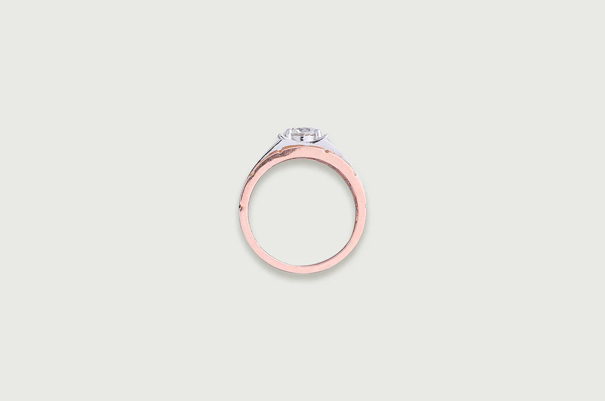 A satin-finished rose-gold band rises seamlessly to cradle a radiant-cut lab diamond, creating a fluid, uninterrupted curve.