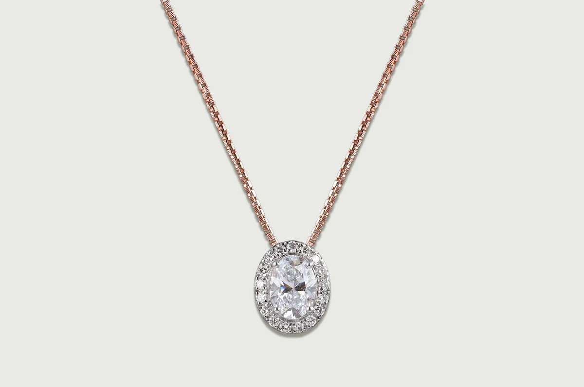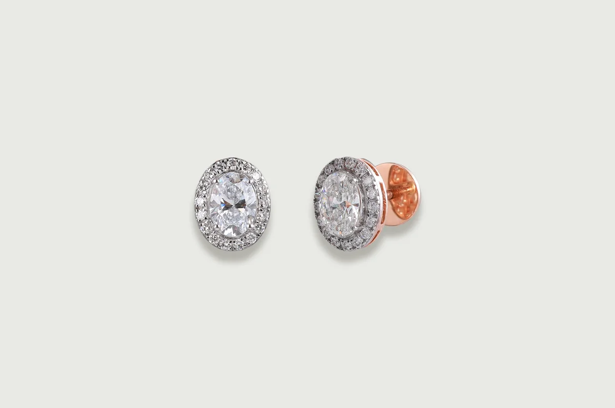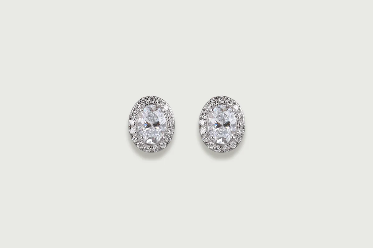 Oval lab-grown diamonds sit within a fine halo of pavé stones, adding depth and a soft luminous edge.