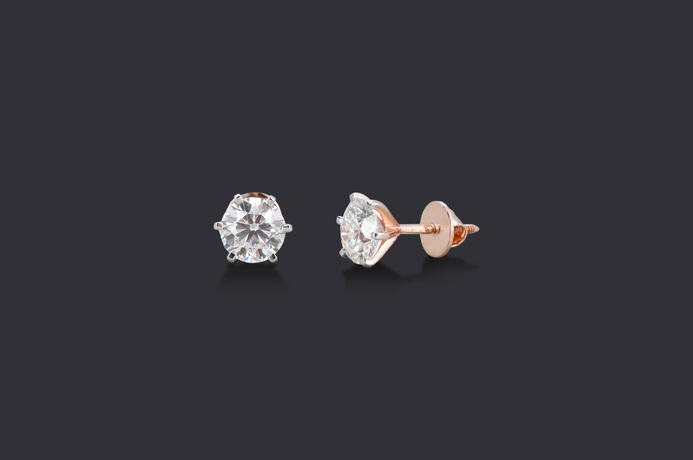The purest expression of minimal luxury — round brilliant diamonds in a secure 6-prong rose-gold setting. These everyday essentials celebrate the unmatched fire of Carbon’s Type IIA diamonds, crafted to let light play endlessly.