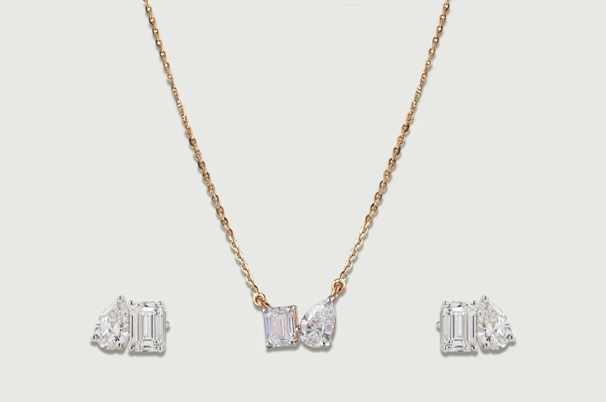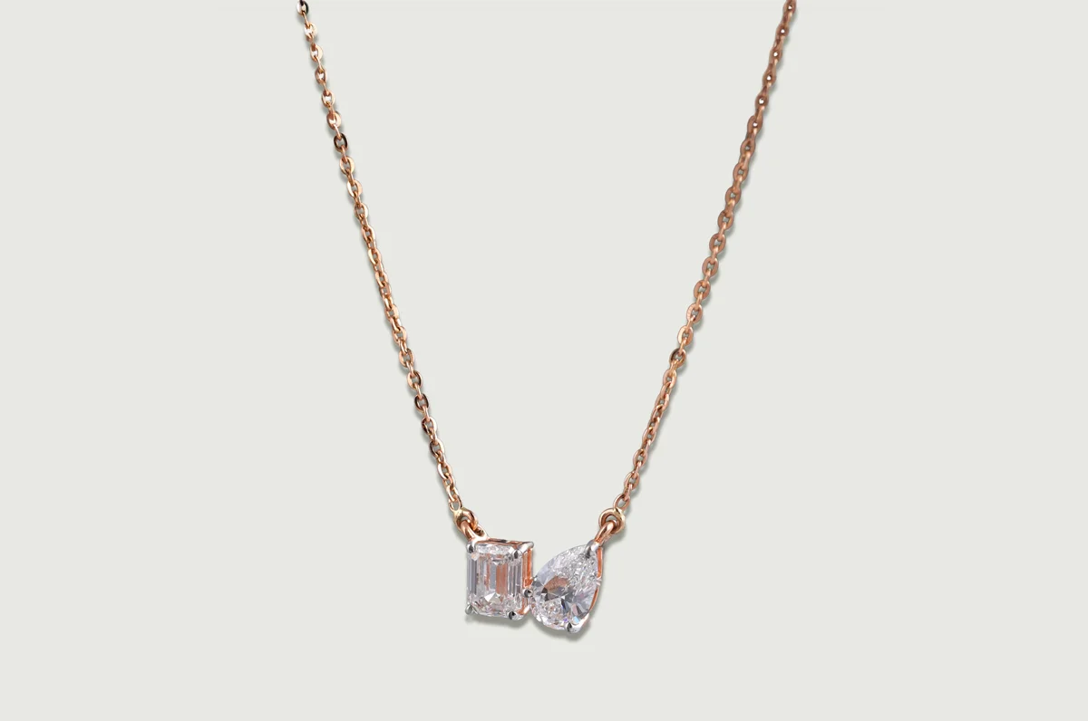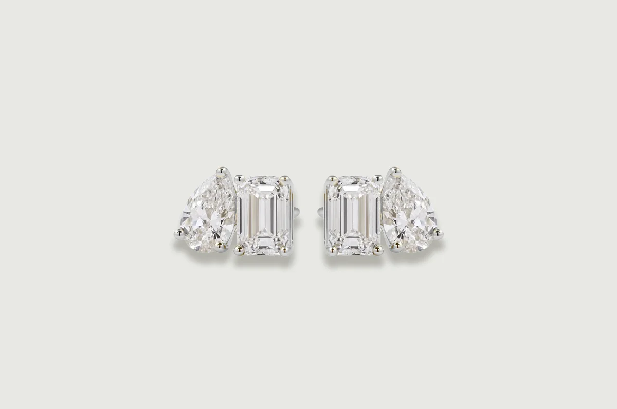 Inspired by the classic toi et moi silhouette, a pear-cut and an emerald-cut lab diamond meet side by side, balancing softness with structure. The pairing creates a clean, contemporary expression of duality — understated, personal and effortlessly elegant for every day.